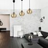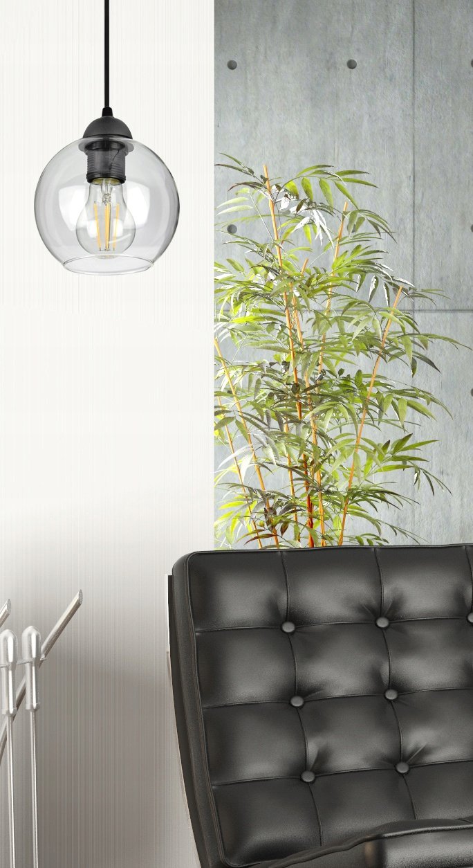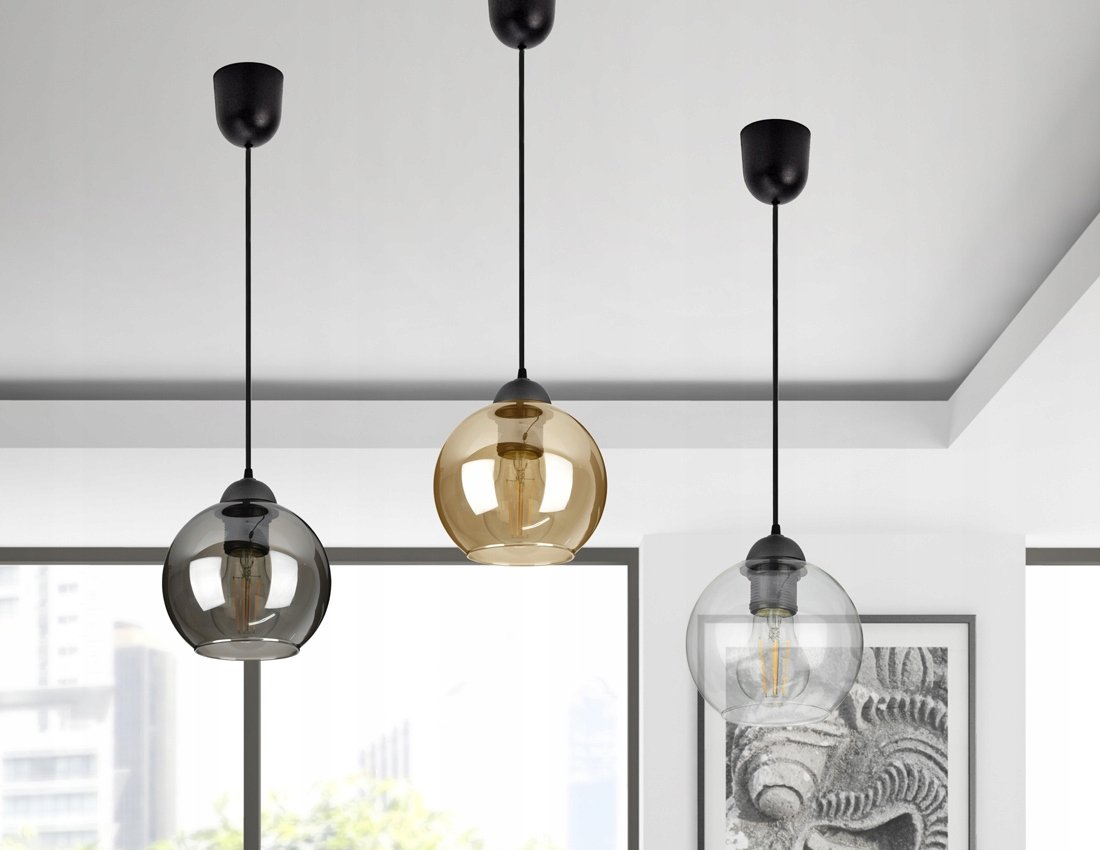 Elegant Glass Globe-EZ1 Luxolar pendant lamp features a glass shade and black suspension. Available in transparent, honey, and graphite colors, it’s perfect for small rooms, kitchens, and more. Easy to install with adjustable height, it supports E27 bulbs up to 60W.